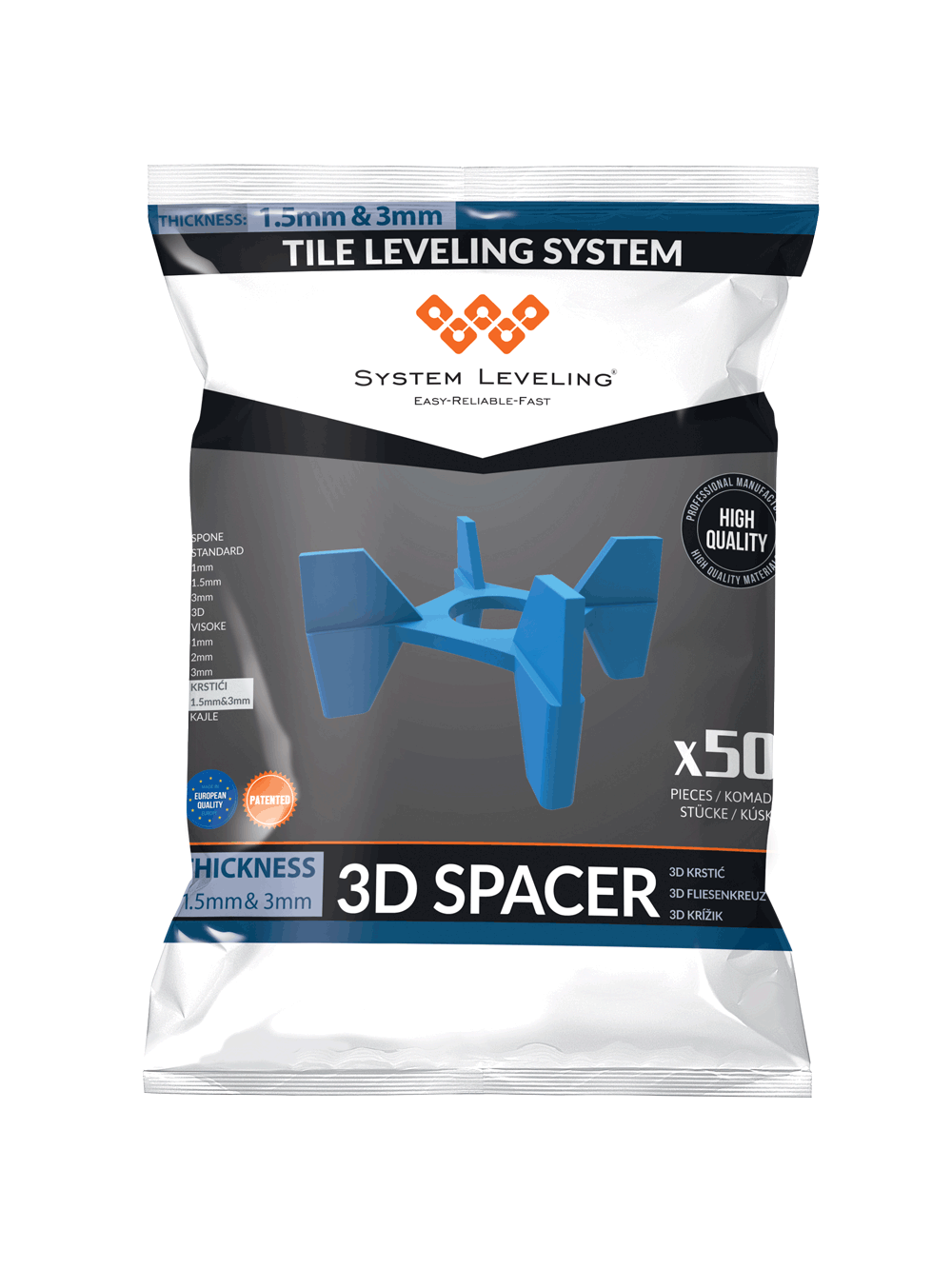 3D tile spacer for all kind of tiles and 1.5 & 3.0 mm joints.